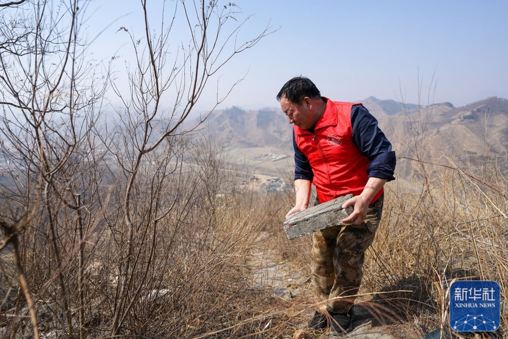 3月29日,柴继志在搬运散落的长城砖。
