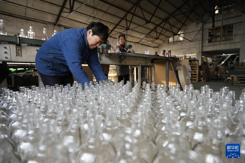 12月29日,河北省滦州市后明碑村一家制瓶企业的工人在整理玻璃瓶产品
