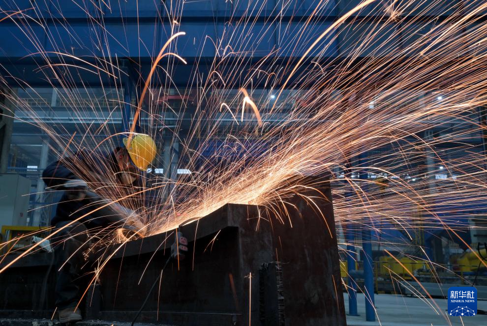 12月30日,工人在唐山市曹妃甸区一家装备制造企业车间工作。