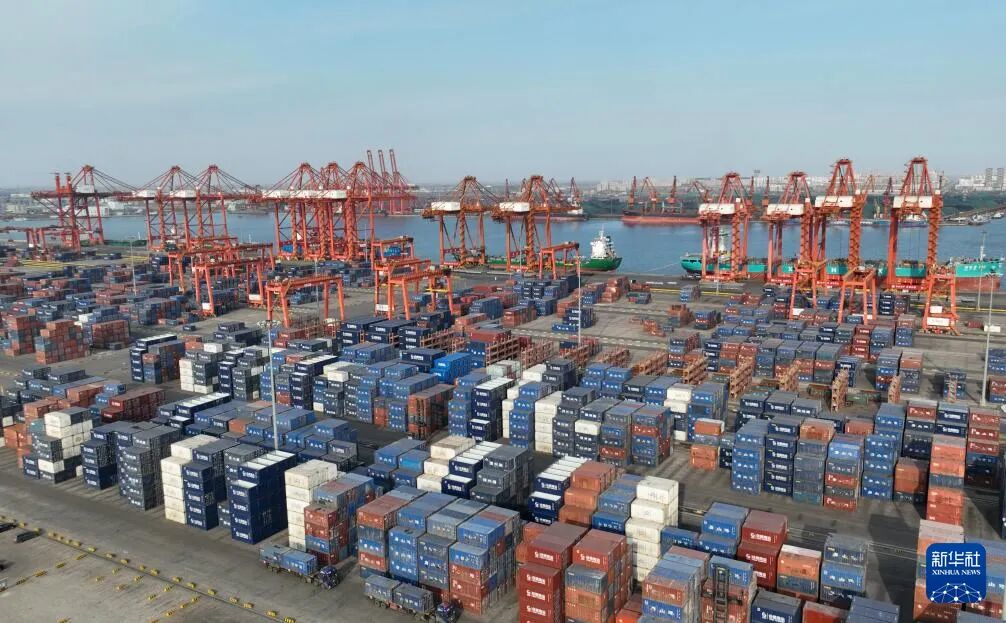 1月21日拍摄的唐山港京唐港区集装箱码头(无人机照片)。
