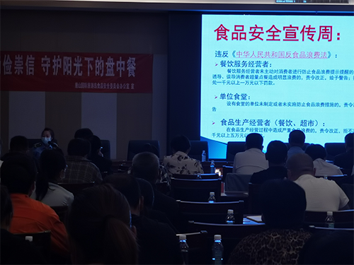 积极动员,在工作微信群下发培训通知,要求全区餐饮服务食品安全负责人和从业人员自觉履行食品安全主体责任义务,积极参与培训学习。5月25日,辖区内餐饮服务单位积极参与,并完成线上考核工作。同时,分局进一步完成上级决策部署工作,在做好疫情防控工作的同时,6月8日开展线下食品安全培训会议,提供面对面交流学习机会,使普法工作走入群众,进而规范餐饮单位日常经营行为。并开展《中华人民共和国反食品浪费法》知识宣讲,下发《杜绝舌尖上的浪费倡议书》100余份,签订反浪费承诺书63份。