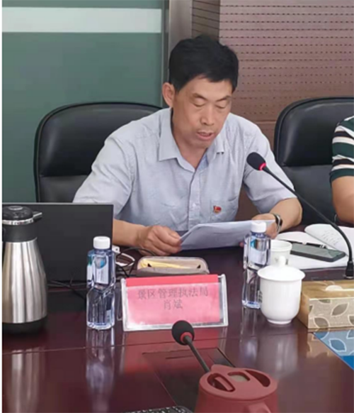 执法局党支部书记肖斌同志以“学党史守初心推动综合执法工作新征程”为题,从“我们为什么学”、“我们要学什么”、“我们要怎么做”三个方面展开讲授,他指出,广大党员干部要坚持以新思想、新理念、新认识武装头脑,不畏艰难、用于干事创业,为国际旅游岛高质量发展贡献执法力量。
