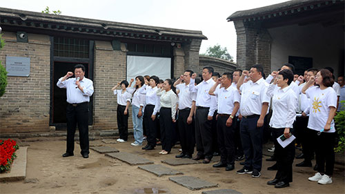 在大钊故居,全体党员整齐列队,在革命烈士李大钊同志雕像前庄严宣誓,随后,大家怀着崇敬的心情,瞻仰了大钊故居。