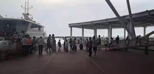 按照上级指示,旅游岛辖区各景区及时发布关闭公告,所有景区关闭、船归港、游客上岸。自7月28日下午三点起,三贝明珠码头停止售票,同时组织协调船只保障运力,组织月岛、菩提岛在岛游客及无备汛抢险任务员工离岛,截止到当日下午五点半,游客及员工3000余人全部撤离完毕。