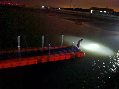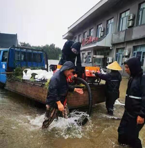 (连续降雨,菩提岛景区低洼地段已出现积水,防汛队员正在紧张“抗汛”)