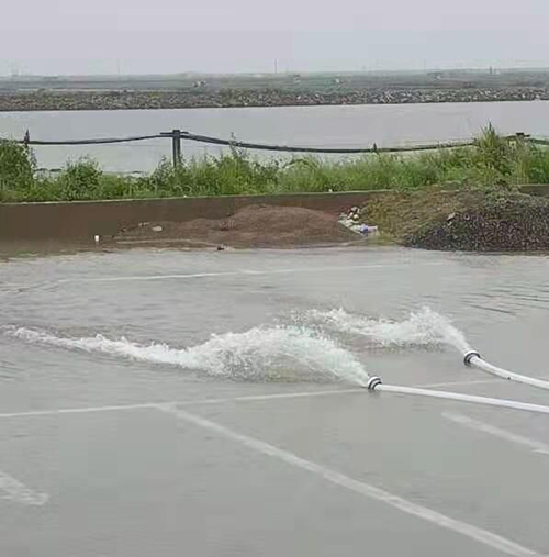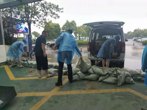 (三贝码头在低洼地带构筑沙袋阻水墙)