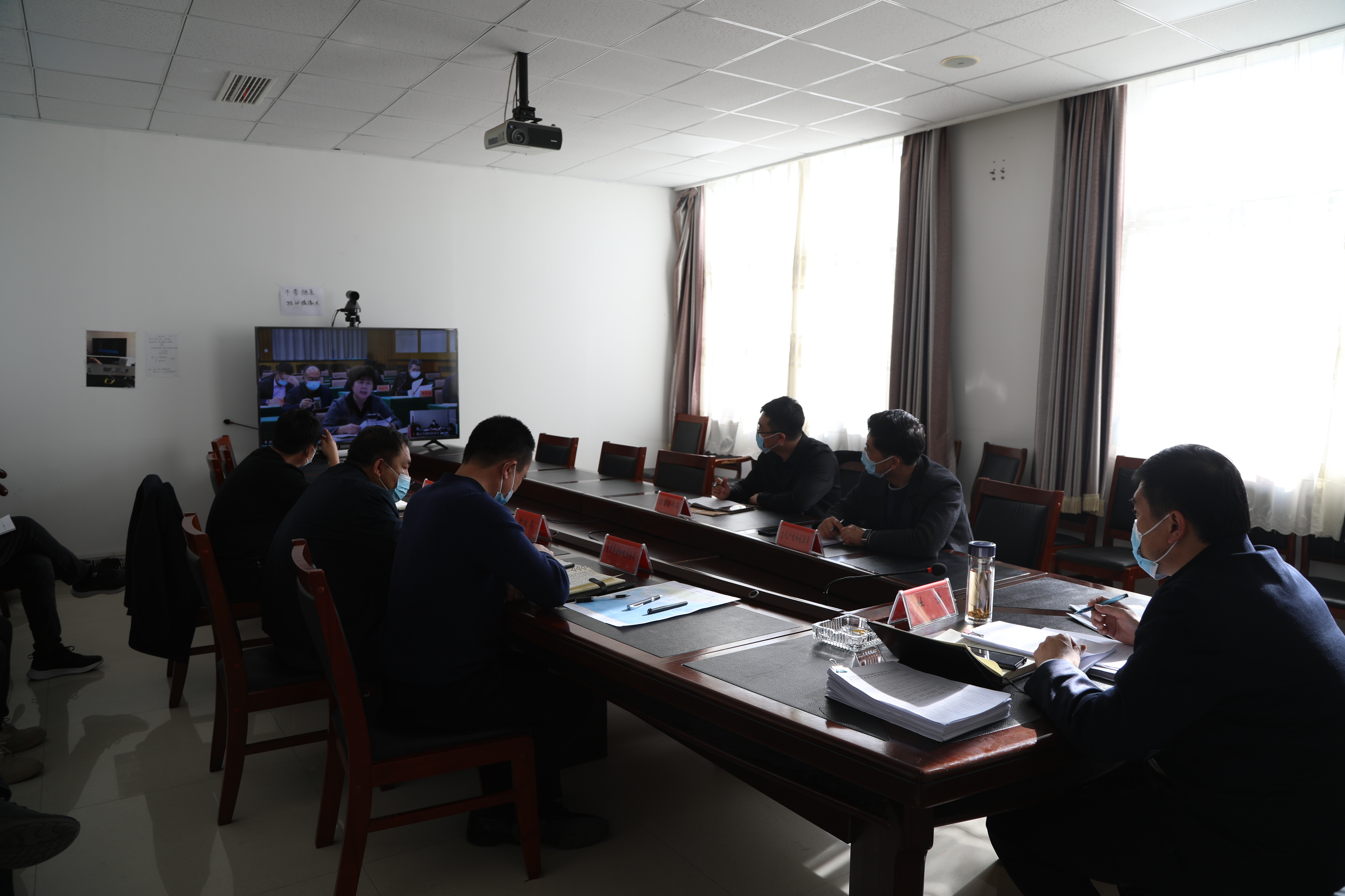 会议以云视频形式召开,我区党工委副书记、管委会主任杜佳,自然资源和规划分局、财政局、社会事务管理局、文化广电和旅游局、招商合作局等单位主要负责人在我区分会场收听收看。