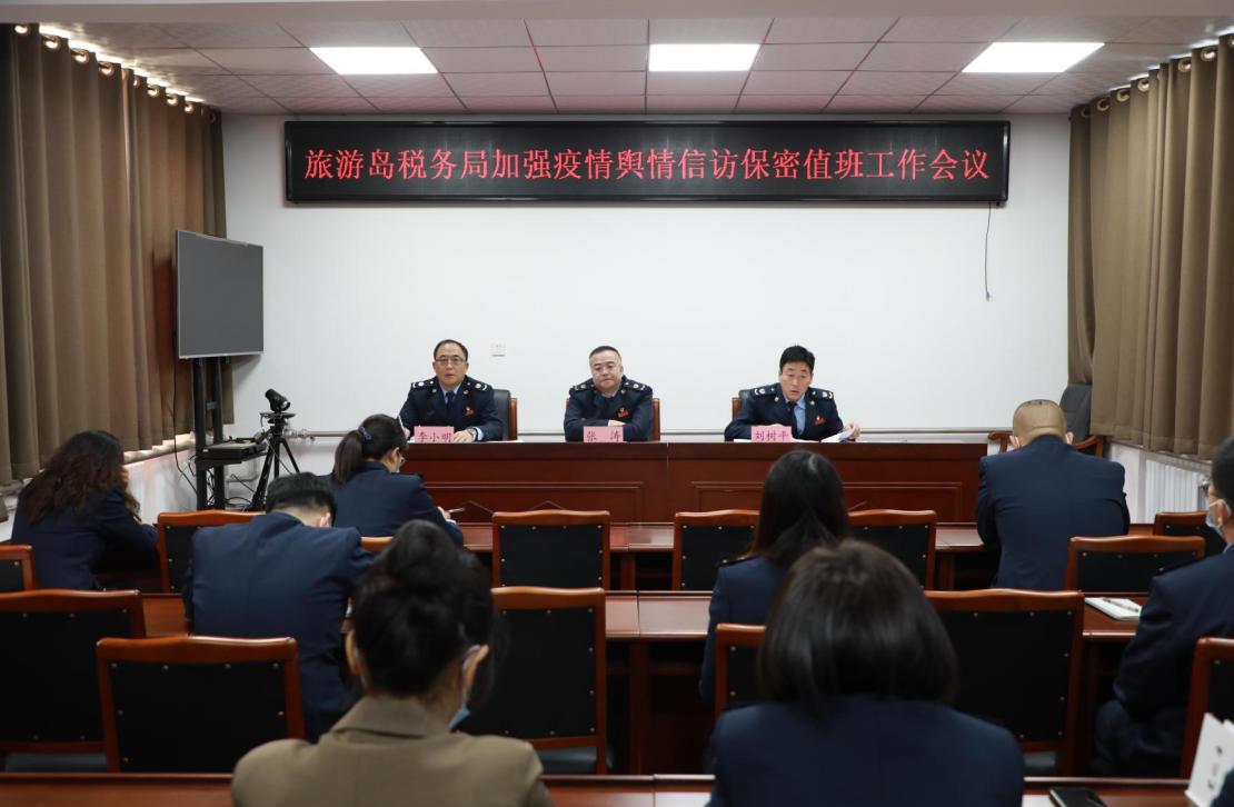 1月29日,唐山国际旅游岛税务局召开加强疫情舆情信访保密值班工作会议。会议还对春节期间疫情防控、信访舆情、机要保密、机关安全、政务值班等安全保障工作进行了强调和部署,确保安全过节。