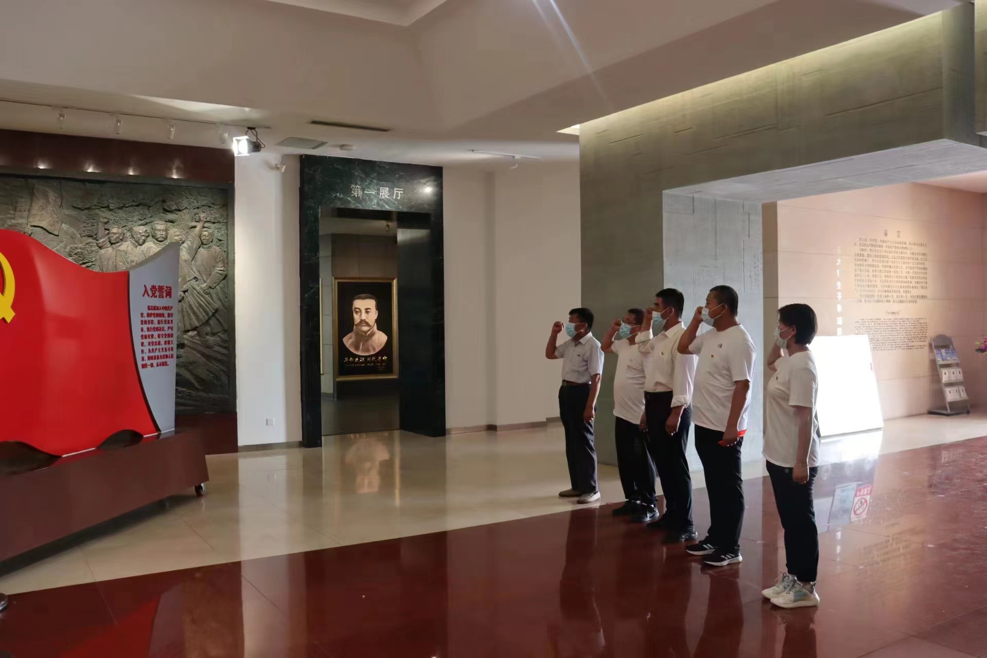 面对李大钊同志的塑像和鲜红的党旗,全体党员满怀无比崇敬的心情整齐肃立,举起右拳,重温入党誓词,声音洪亮,字句铿锵。庄严神圣的誓词,强烈震撼着每一位党员,使第一位党员重温入党时的庄严承诺和奋斗追求,永葆共产党员的政治本色。