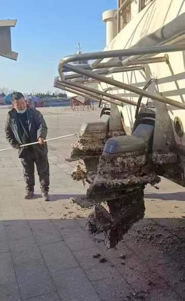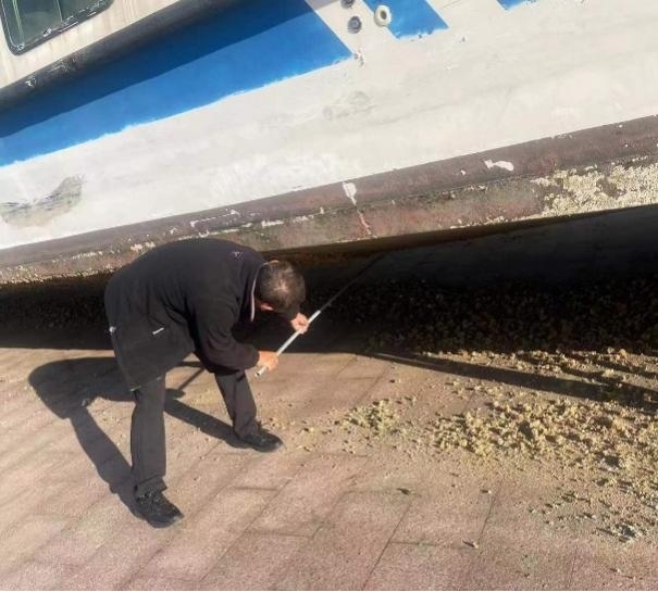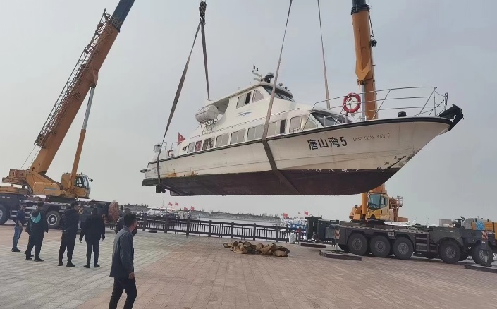 为保障旅游船舶安全过冬及上岸后的正常维修保养,船艇公司严密组织、认真筹备,按照预先设计的吊装方案安全、高效的完成了三岛游5号、 7号、 10号船舶, 唐山湾5-9号、19号、 20号船舶的上岸吊装工作。吊装上案的船舶要架在特制的木头架子上,一方面避免船底直接接触地面发生剐蹭后造成破损,另一方面更好的保持船舶的稳定性,更安全的度过大风天气。船艇公司留守员工将上岸后的船舶用淡水清洗,清理船底污垢和附着的海生生物,涂刷防护漆有效保护船底,以保证下一个旅游季的正常使用。