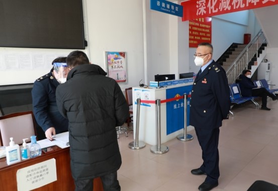 张涛局长重点查看了人员在岗、办税服务厅自助办税、远程问办中心、消毒台账等相关情况,充分肯定了第一税务分局的各项工作。张涛局长强调,当前是疫情防控新时期,全局要众志成城,克服困难。一是要以党的二十大精神为指引,将疫情防控作为重要政治任务来抓,牢固树立“生命重于泰山、疫情就是命令、防控就是责任”的思想。二是要继续优化纳税服务,大力推广“非接触式”办税服务,畅通纳税人联系渠道,确保纳税人缴费人办税需求不受疫情影响。三是要强化办公环境公共卫生管理,坚持全面消杀与重点消杀相结合,加强税务干部个人防护管理,在保证税务工作顺利开展的前提下,确保个人安全健康。