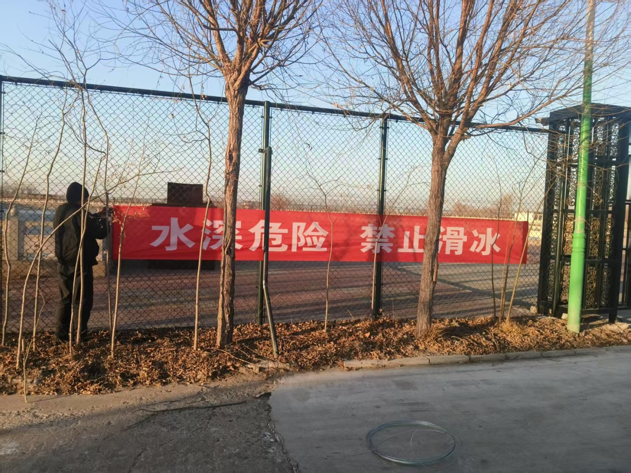 一是制定了《唐山际旅游岛林场冰上风险隐患排查整治方案》,成立了以林场场长任组长、副场长为副组长,相关股室人员为成员的风险排查整治领导小组。二是并组织人员按照方案要求对林场范围内的祥云岛水库、鹏悦度假村池塘、红博农业千亩鱼池、管委会西侧池塘、二分场南池塘、潮河等6个重点区域冰面隐患进行常态化排查整治,发现风险隐患点两处,分别是管委会西侧鱼池、红博千亩鱼池2处警示牌缺失。三是在这两个区域分别设置了安全警示牌,切实增强广大群众的冰上活动安全意识和自护自救能力,并作为今后常态化巡逻检查重点区域。下阶段将按照安全隐患排查结果,对重点区域开展常态化巡逻检查,对涉冰游玩人员进行劝离——“珍爱生命,远离冰水险境”。