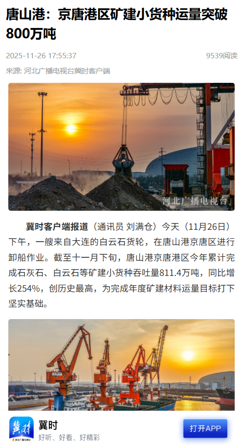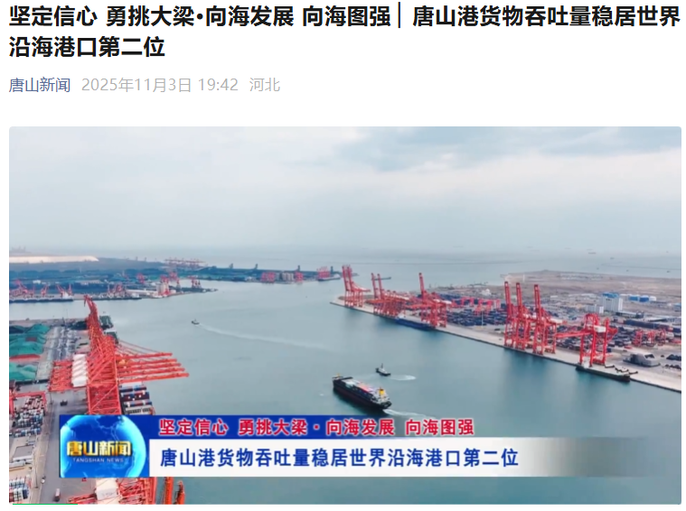11月份,新华网、人民网、中央广播电视总台等中央级媒体,学习强国河北平台、河北日报及客户端、河北新闻联播、河北广播电视台冀时客户端等省级媒体,以及唐山新闻等市级媒体聚焦港岛,围绕智慧港口建设、海洋牧场发展、钢铁智能制造、零碳试点落地、生态保护、港产联动与产业升级等重点工作展开集中报道。一起来看↓↓↓